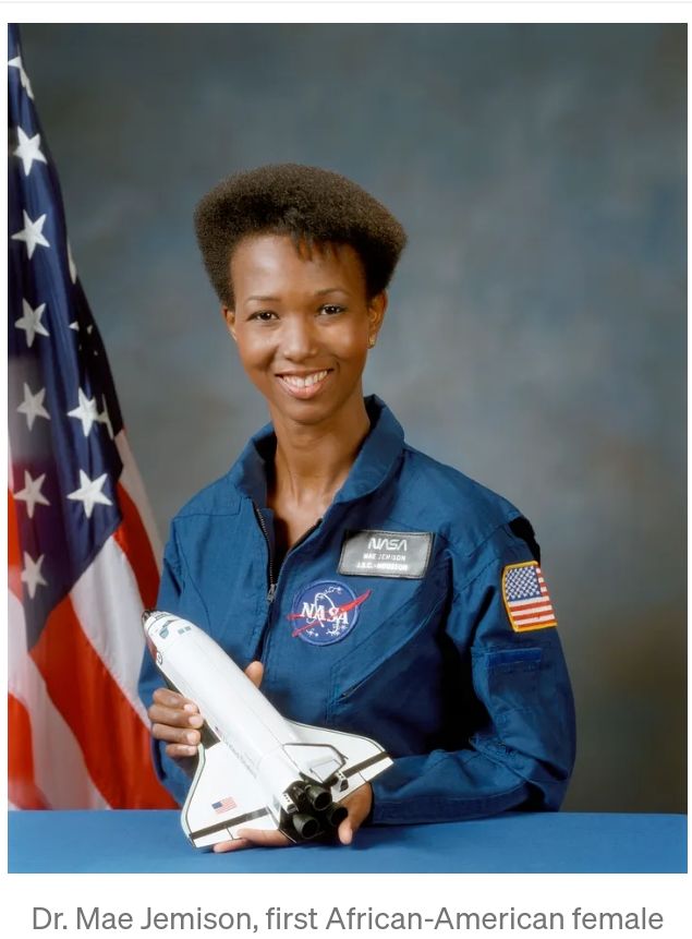 Dr. Mae Carol jemison was born on October 17,1956 in Decatur, Alabama in 1992 she became the first black woman to travel in space.